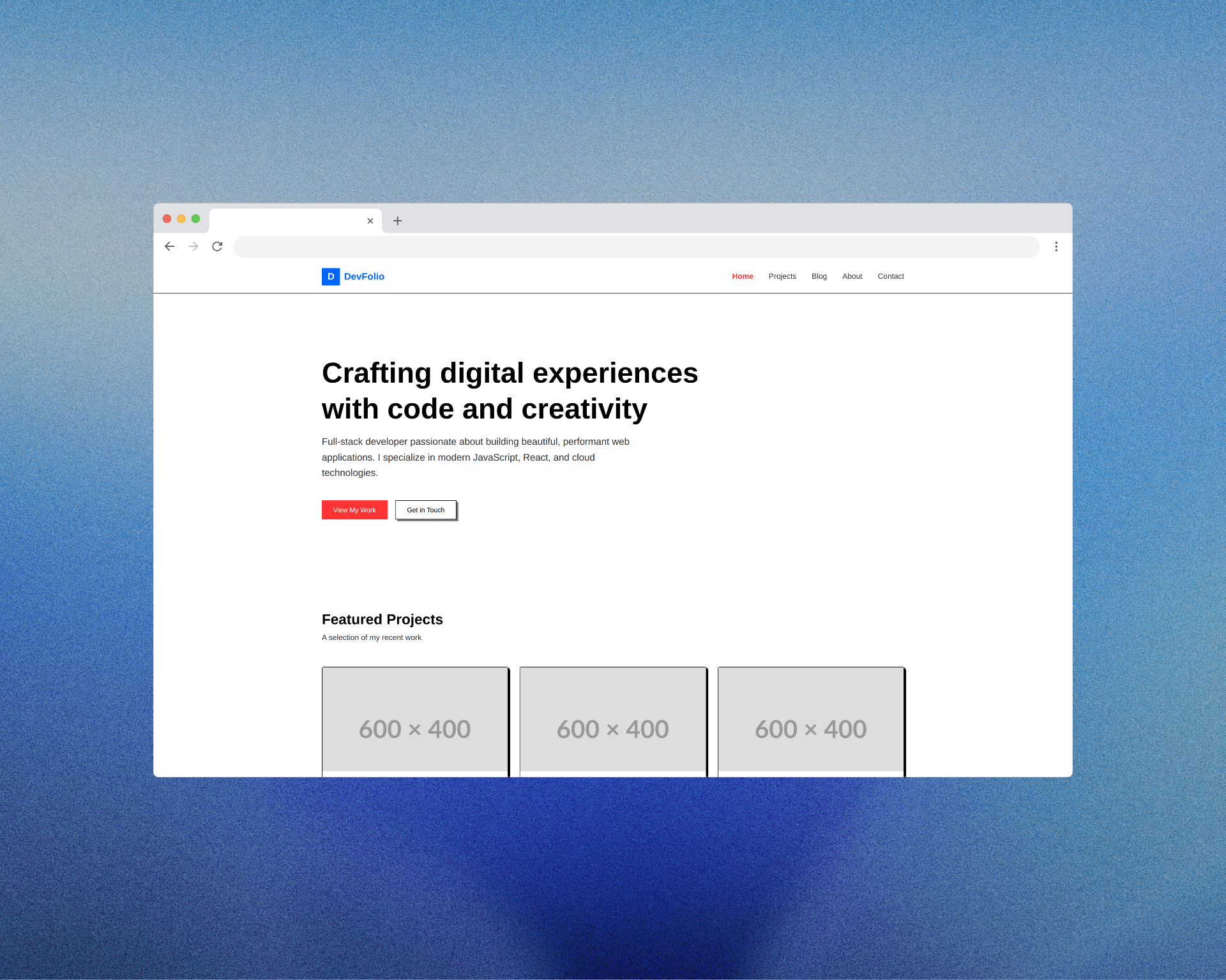 DevFolio helps developers showcase their work and write about what they love. Built with Next.js 14, Tailwind CSS, and shadcn/ui, it’s a clean, fast, and fully static portfolio + blog combo.