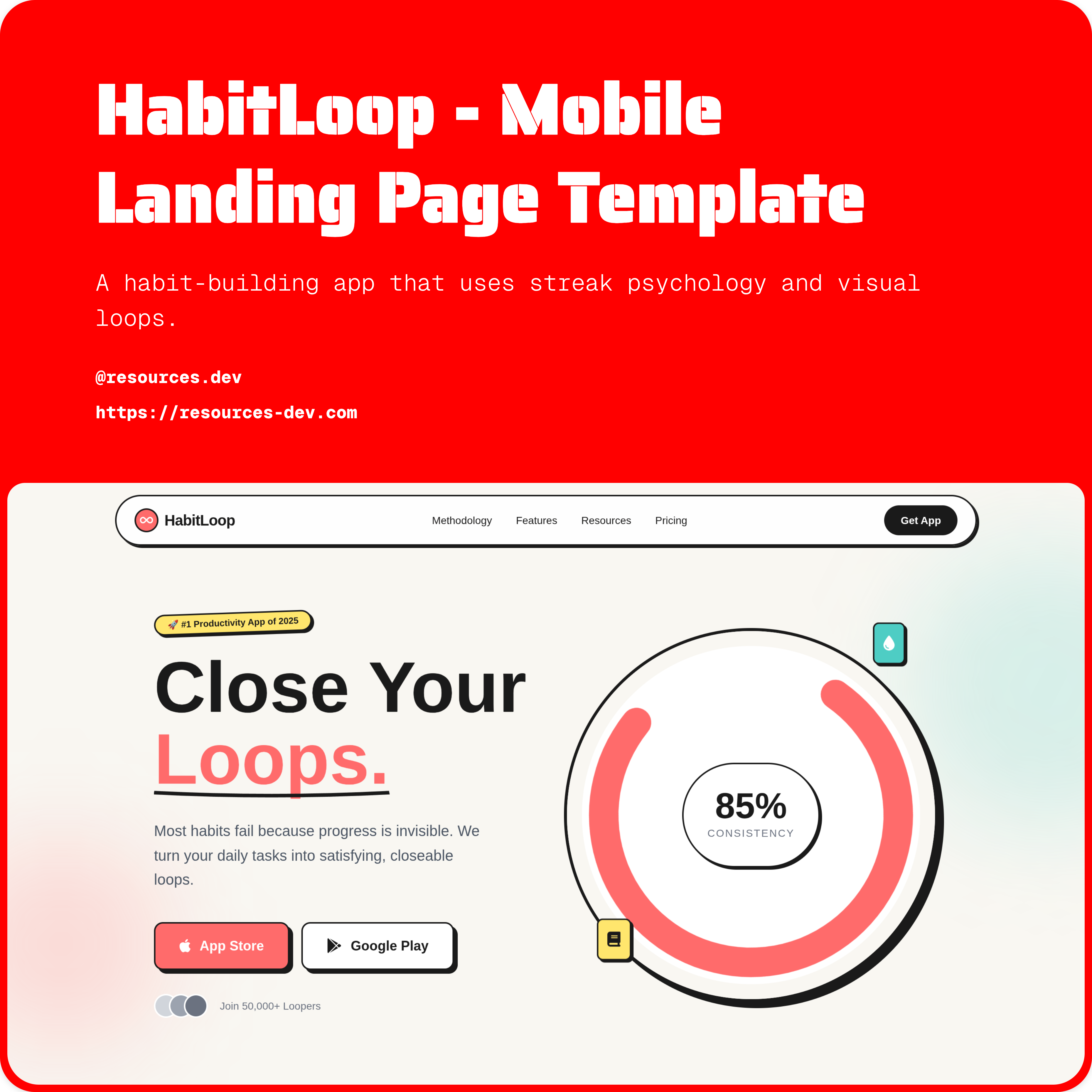 A bold, psychology-driven landing page template for habit trackers and productivity apps. Built to visualize progress, trigger dopamine loops, and convert visitors into daily users using motion, clarity, and behavioral design.