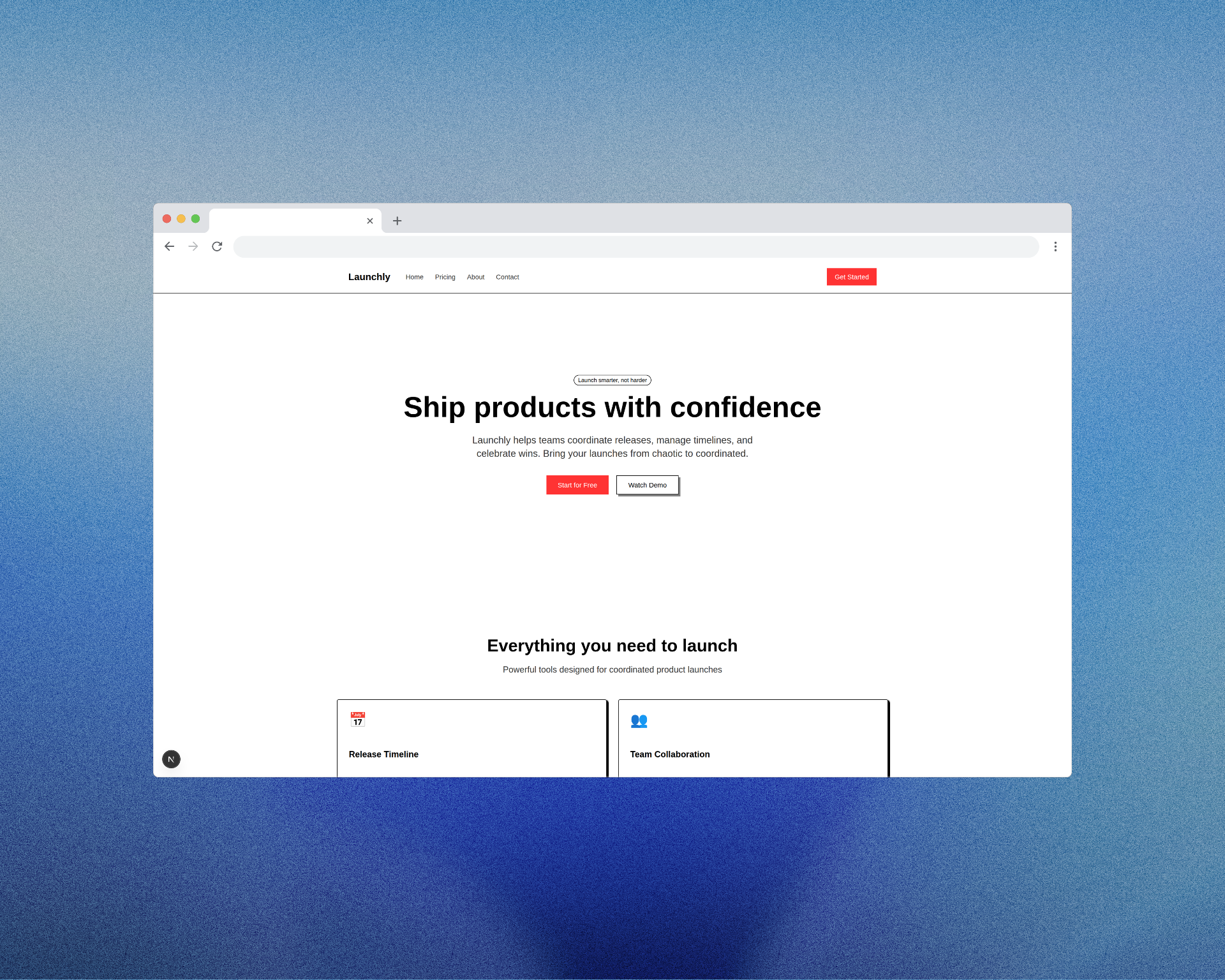 Launchly is a fully static SaaS website template built with Next.js 14, Tailwind CSS, and shadcn/ui. Includes all essential marketing pages: Home, Pricing, About, Contact, Terms, and Privacy. Perfect for SaaS founders who want to launch fast with a clean, responsive design and reusable UI components.